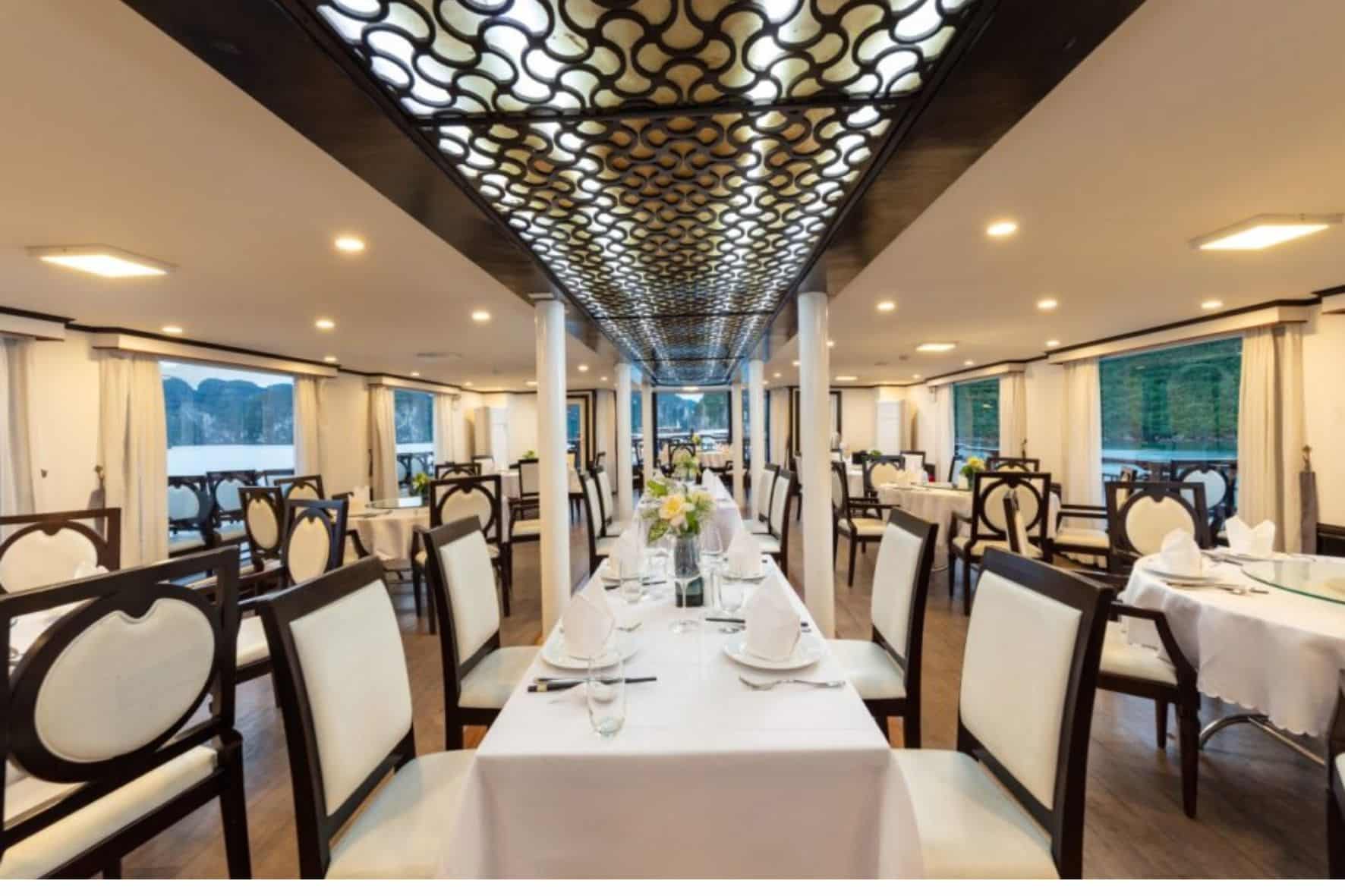 5星級阿曼達遊輪的設計完美平衡了經典與現代風格以及熱忱的服務。阿曼達遊輪是下龍灣第一艘也是唯一的五星級遊輪,提供2天1 夜的行程,探索下龍灣最原始、最美麗的處女洞海灘。