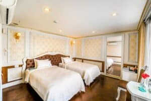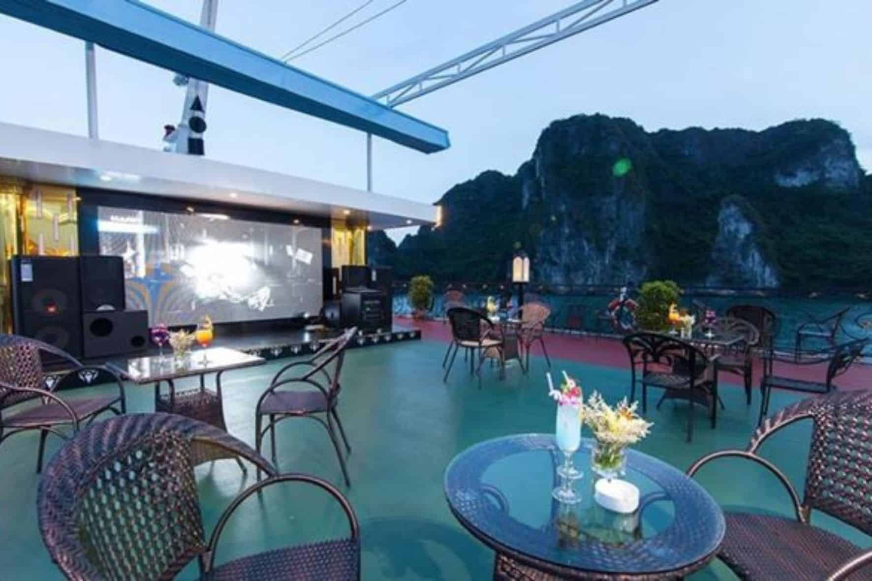 海藍寶石遊輪在下龍灣提供豪華迷人的遊輪體驗。登上船,踏上迷人的旅程,探索這個著名目的地的令人驚嘆的美景。下龍灣海藍寶石遊輪是第一艘展示新古典主義設計的遊輪,擁有 22 間優雅的客艙、一間餐廳和一間酒吧,最多可容納 70 名客人。
