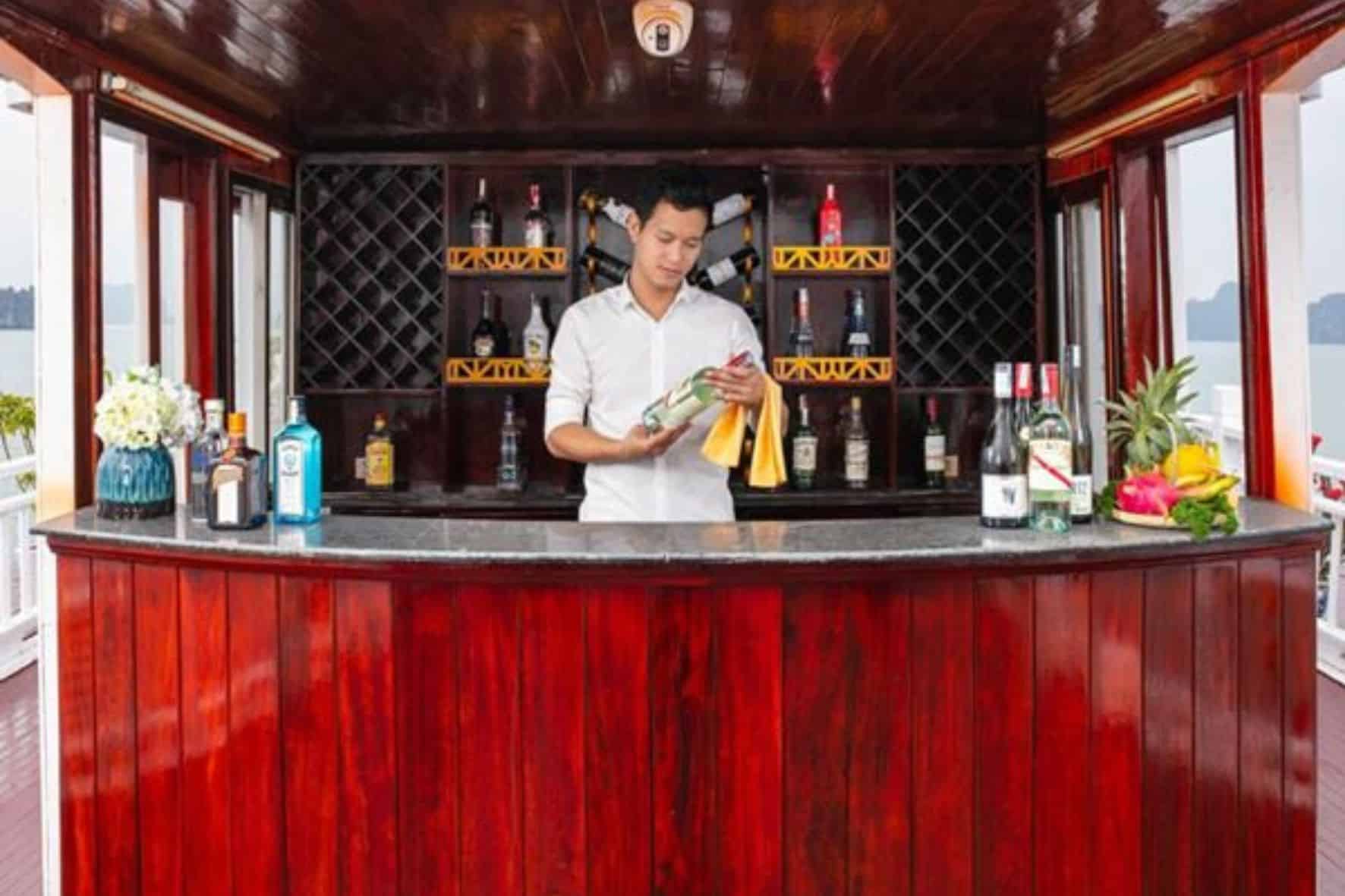 拉里賈納經典遊輪位於下龍灣,設有共用休息室、露臺、餐廳和酒吧。這間四星級飯店提供旅遊諮詢台和行李寄存處。住宿設有晚間娛樂和禮賓服務。所有客房均配有空調、冰箱、迷你吧、電熱水壺、坐浴盆、免費盥洗用品和衣櫃。這間飯店的客房提供附設淋浴設施和吹風機的私人衛浴,還享有海景。飯店每天早晨供應早餐,包括自助餐、歐陸式早餐和全套英式/愛爾蘭式早餐。拉里賈納經典遊輪附近的熱門地標包括白齋海灘、女王纜車站和下龍太陽世界公園。最近的機場是吉碑國際機場,距離此住宿45公里。住宿提供付費機場接駁服務。